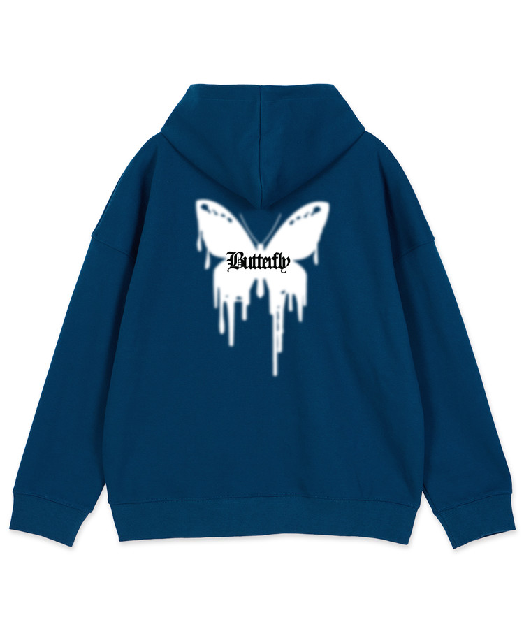 버터 플라이 오버핏 와이드 숄더 후드 집업_틸블루