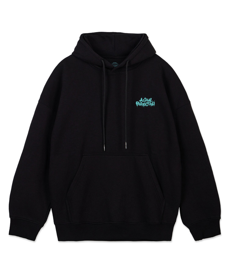 브러쉬 그래피티 레터링 오버핏 와이드 숄더 후디_블랙