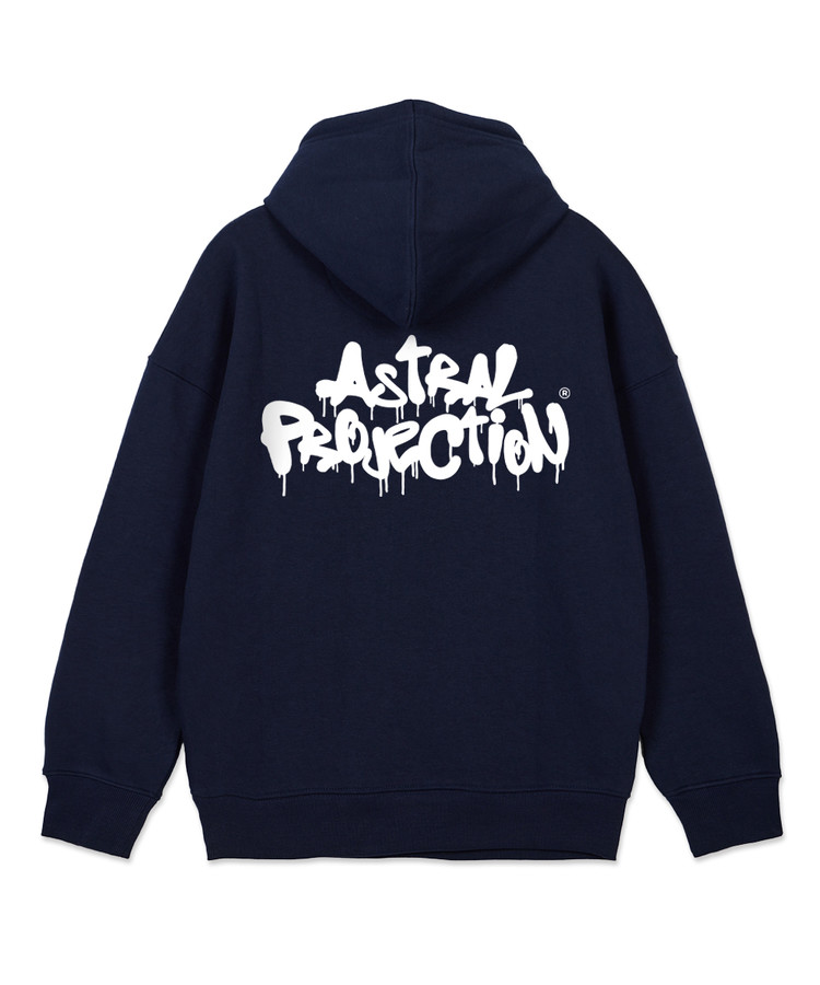 브러쉬 그래피티 레터링 오버핏 와이드 숄더 후디_네이비