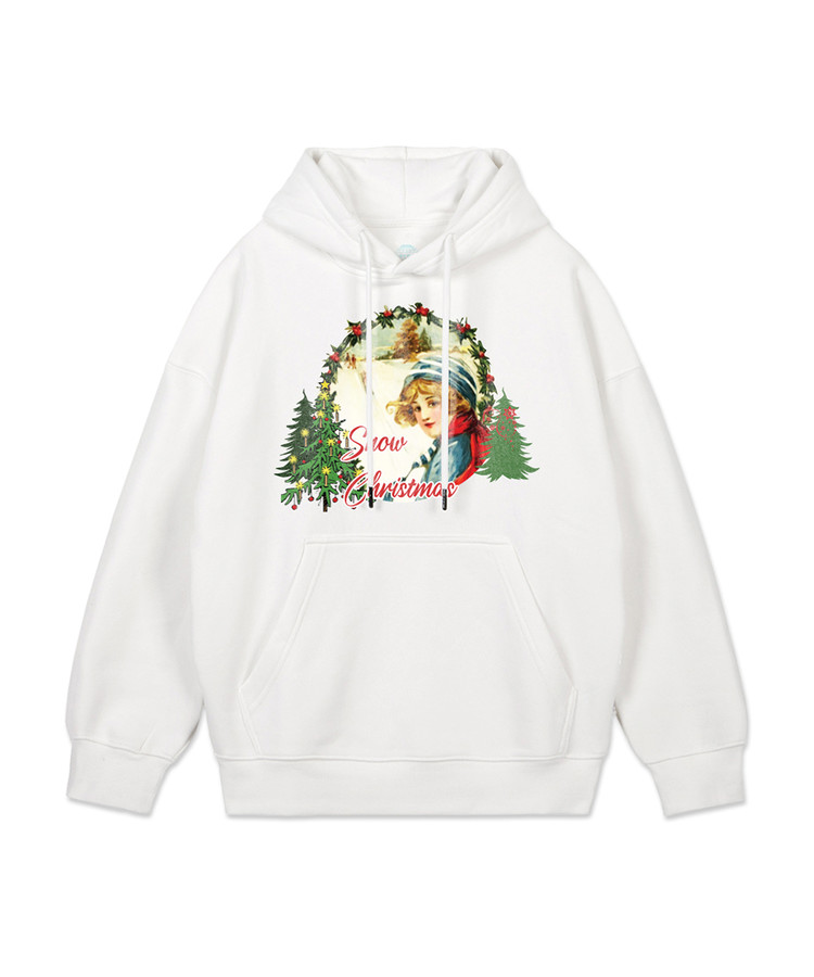 크리스마스 스페셜 03 오버핏 와이드 숄더 후디_화이트