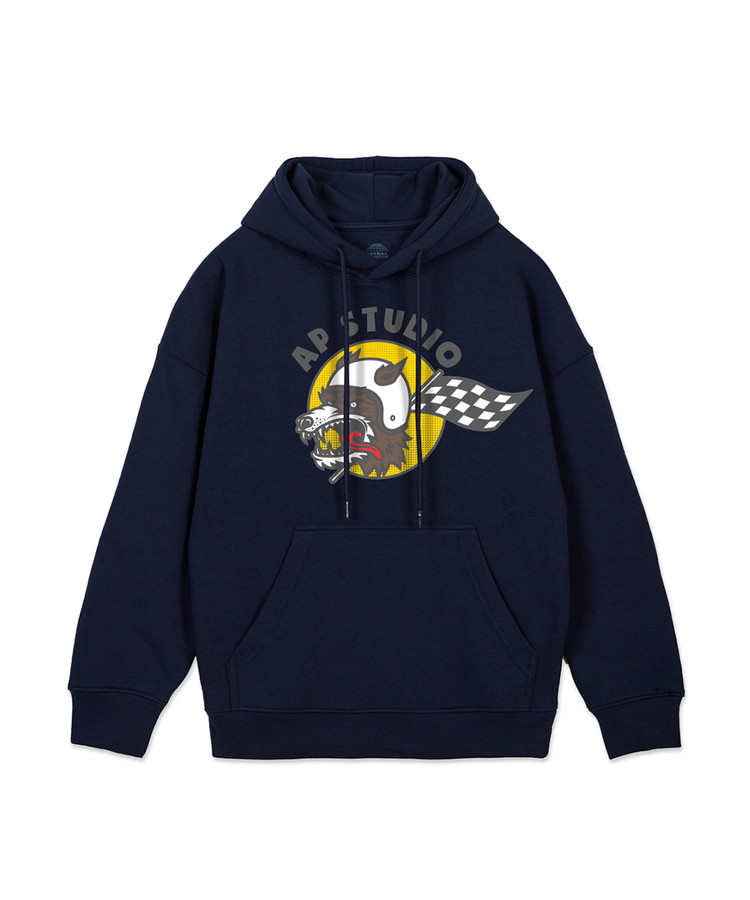 에이피 스튜디오 레이싱 도그 오버핏 와이드 숄더 후디_네이비