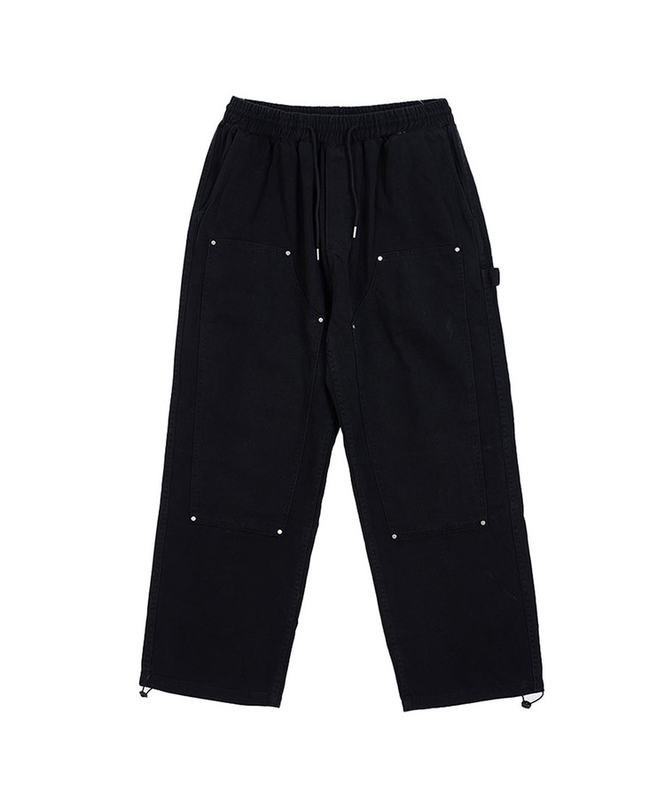 와이드 웨더링 워싱 밴딩 팬츠_블랙
