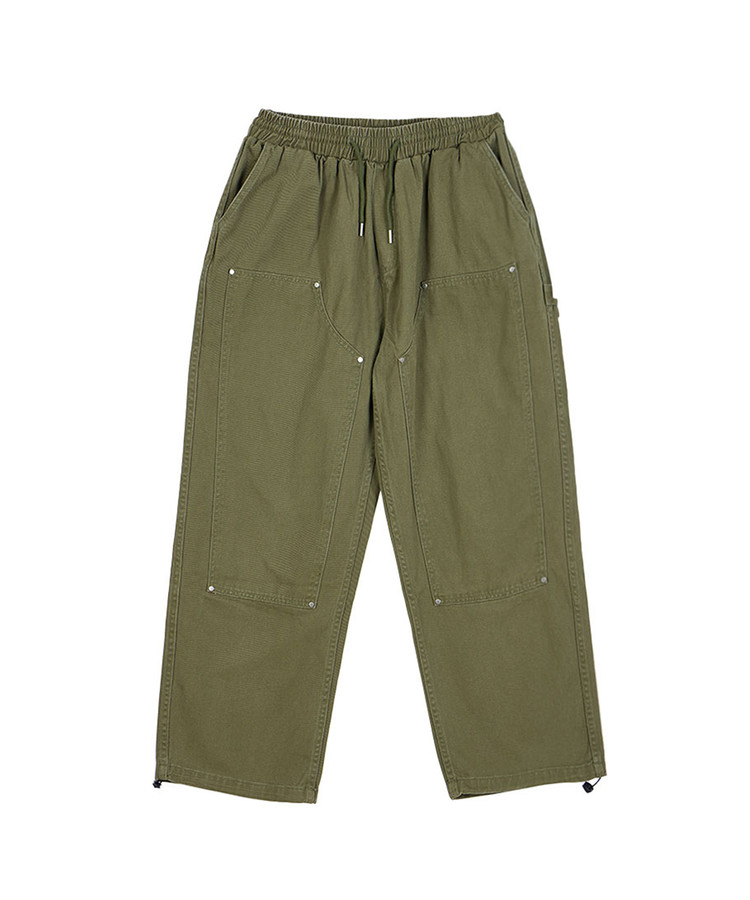 와이드 웨더링 워싱 밴딩 팬츠_카키