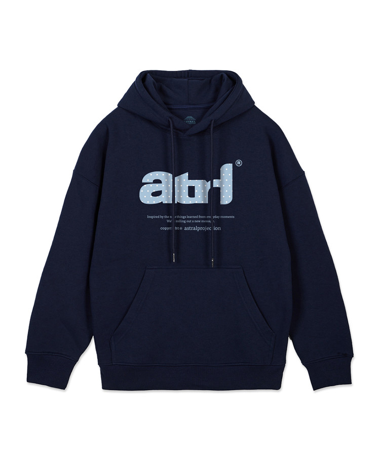 ATRL 도트 레터링 오버핏 와이드 숄더 후디_네이비